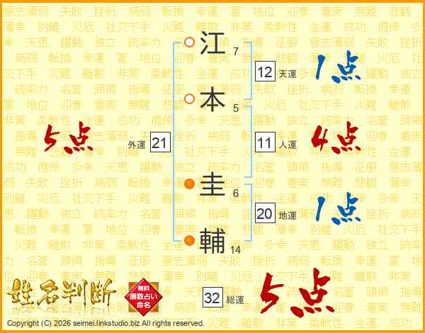江本圭輔さんの総運は32画の5点!