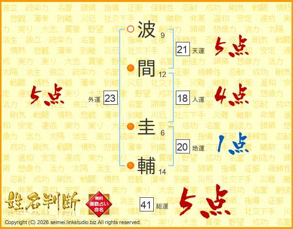 波間圭輔さんの総運は41画の5点!