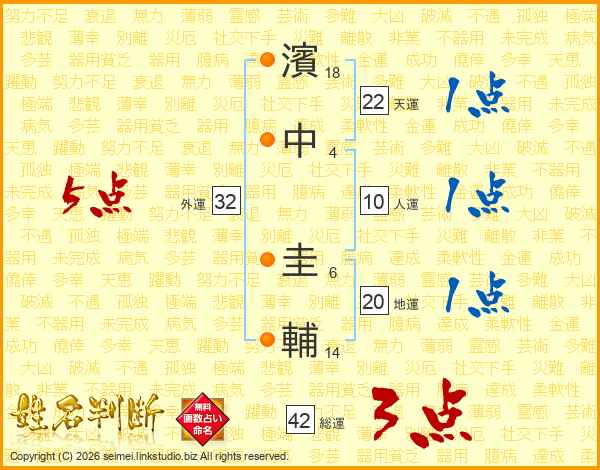 濱中圭輔さんの天運は22画の1点!