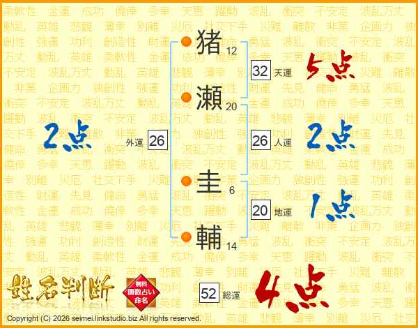 猪瀬圭輔さんの総運は52画の4点!