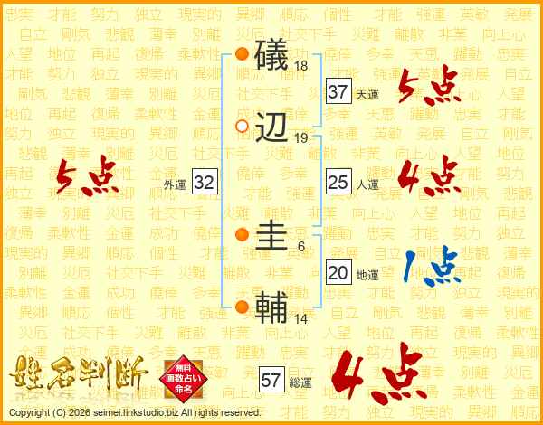 礒(18画)辺(19画) 圭(6画)輔(14画)