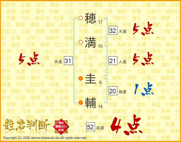 穂満圭輔さんの総運は52画の4点!
