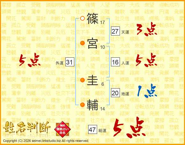 篠宮圭輔さんの外運は31画の5点!