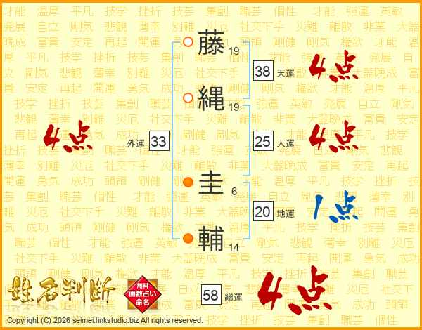 藤縄圭輔さんの総運は58画の4点!