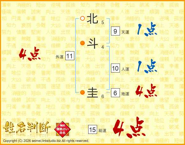 北斗圭さんの総運は15画の4点!