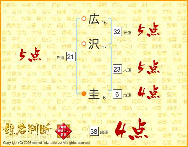 広沢圭さんの総運は38画の4点!