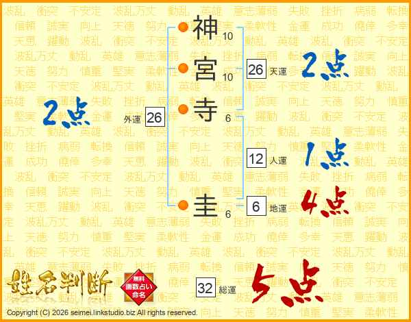 神宮寺圭さんの総運は32画の5点!