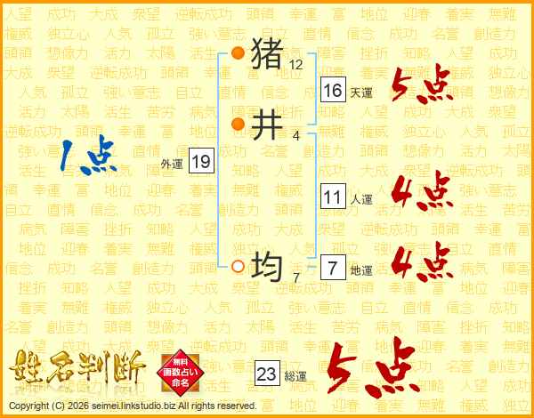 猪井均さんの総運は23画の5点!