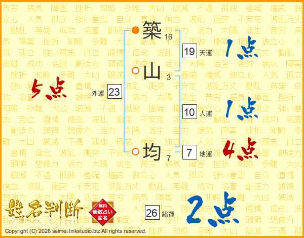 築山均さんの総運は26画の2点!