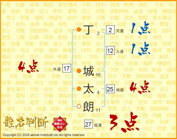 丁城太朗さんの地運は25画の4点!