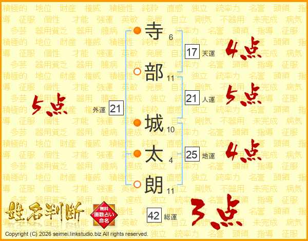 寺部城太朗さんの人運は21画の5点!