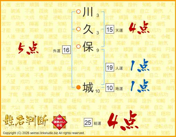 川久保城さんの総運は25画の4点!