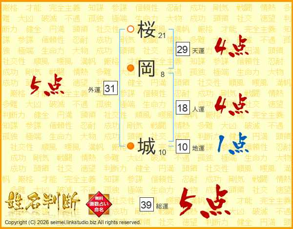 桜岡城さんの総運は39画の5点!