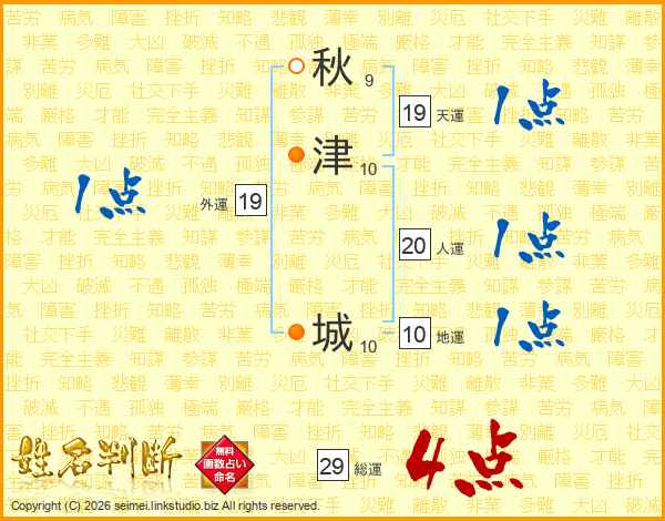 秋津城さんの総運は29画の4点!