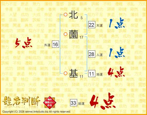 北薗基さんの総運は33画の4点!