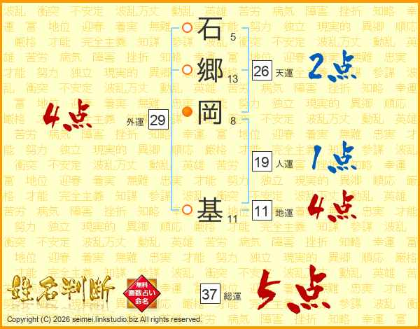 石郷岡基さんの総運は37画の5点!