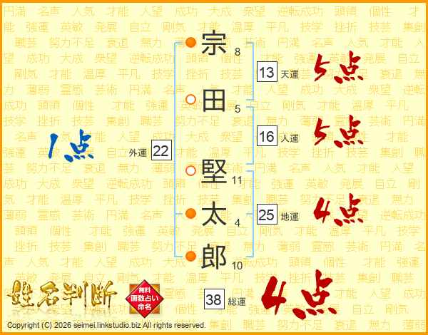 宗田堅太郎さんの総運は38画の4点!