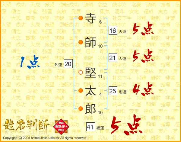 寺師堅太郎さんの総運は41画の5点!