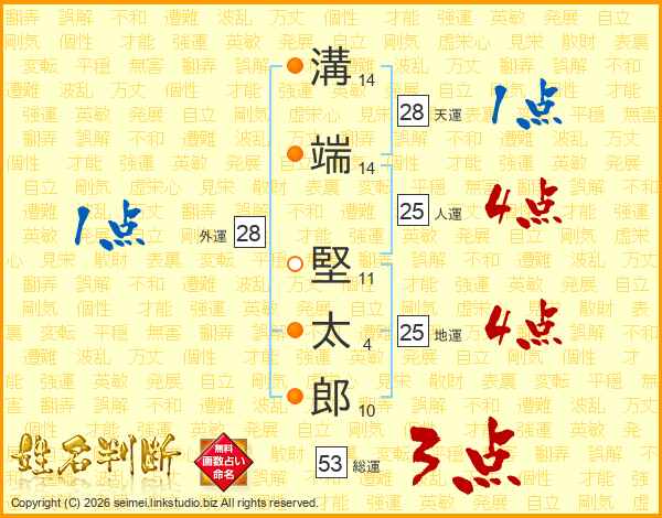 溝(14画)端(14画) 堅(11画)太(4画)郎(10画)