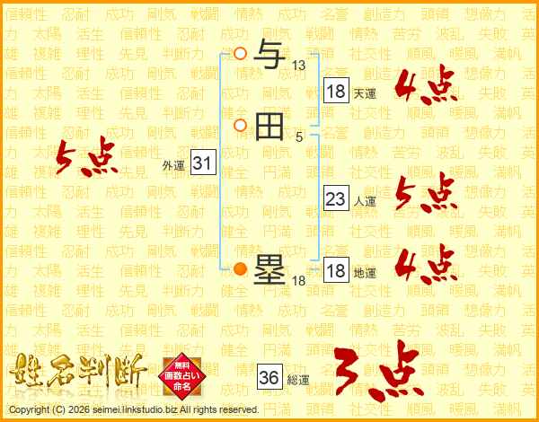 与田塁さんの地運は18画の4点!