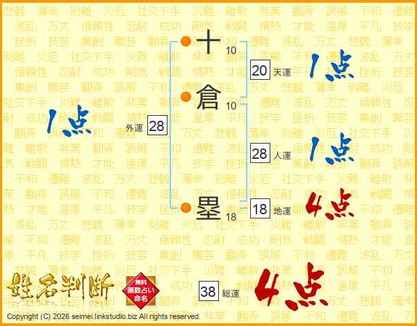 十倉塁さんの総運は38画の4点!