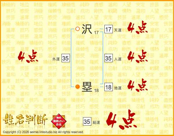 沢塁さんの総運は35画の4点!