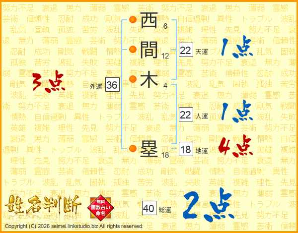 西間木塁さんの地運は18画の4点!