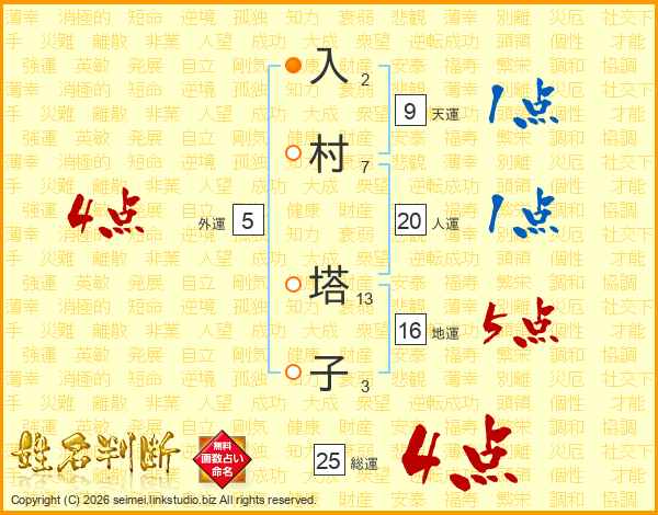 入村塔子さんの総運は25画の4点!