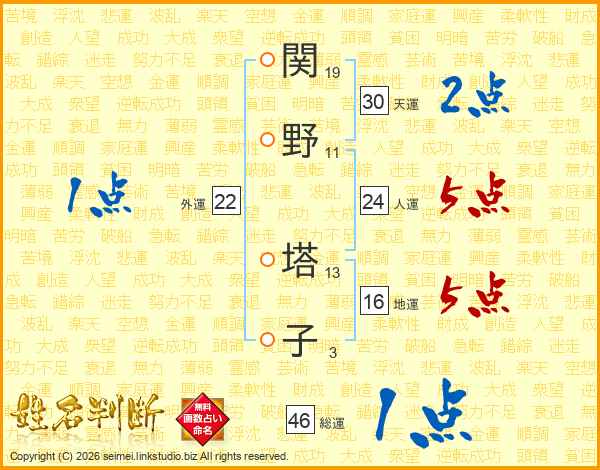 関野塔子さんの総運は46画の1点!