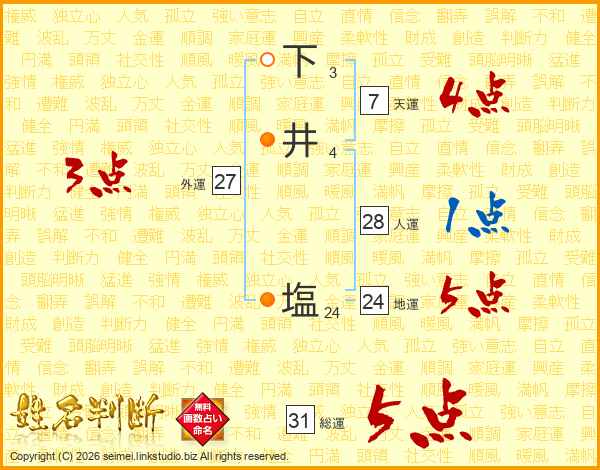 下井塩さんの総運は31画の5点!