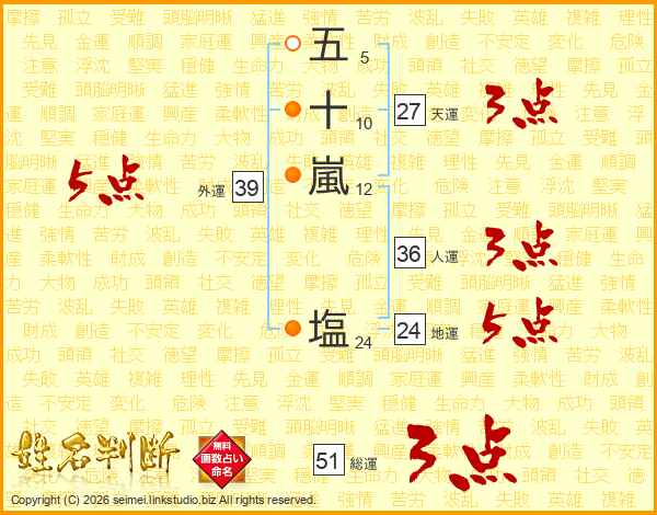 五十嵐塩さんの総運は51画の3点