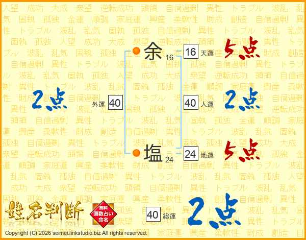余塩さんの総運は40画の2点!