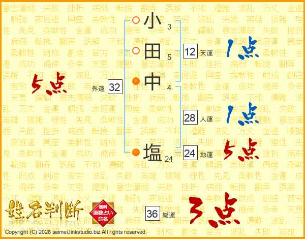 小田中塩さんの総運は36画の3点!