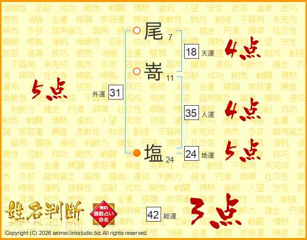 尾嵜塩さんの人運は35画の4点!