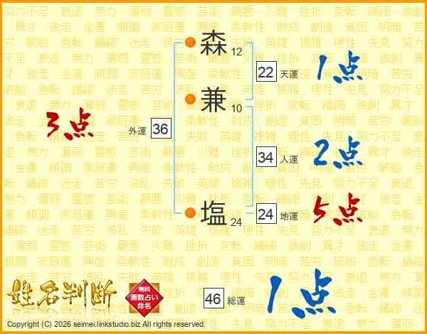 森兼塩さんの総運は46画の1点!