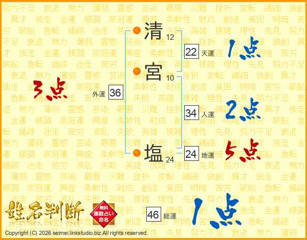 清宮塩さんの総運は46画の1点!
