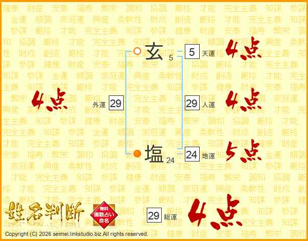 玄塩さんの総運は29画の4点!