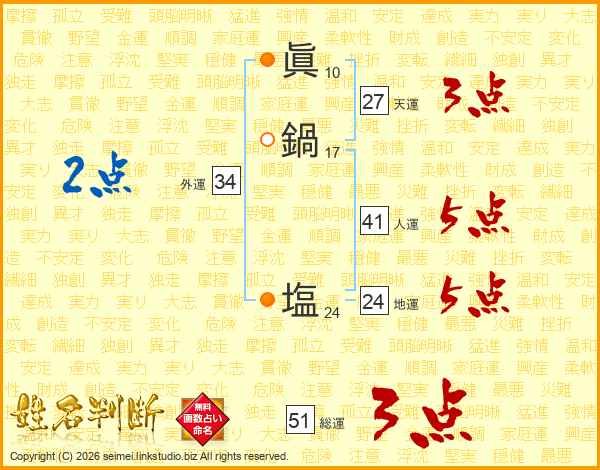 眞鍋塩さんの総運は51画の3点!