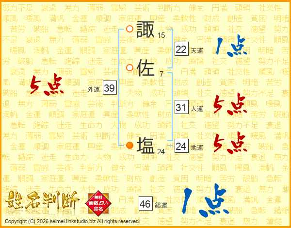 諏佐塩さんの外運は39画の5点!