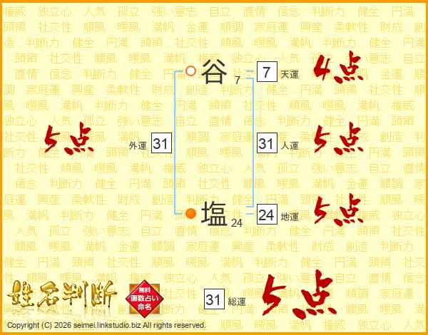 谷塩さんの総運は31画の5点!