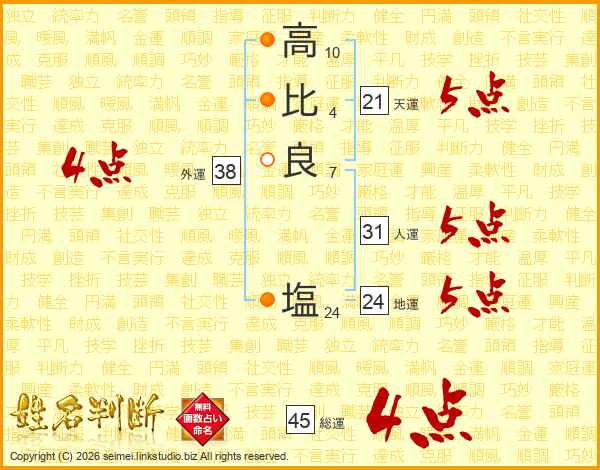 高比良塩さんの総運は45画の4点!