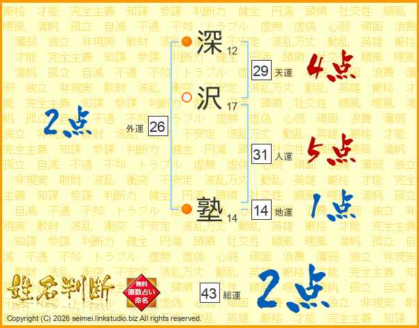 深沢塾さんの総運は43画の2点