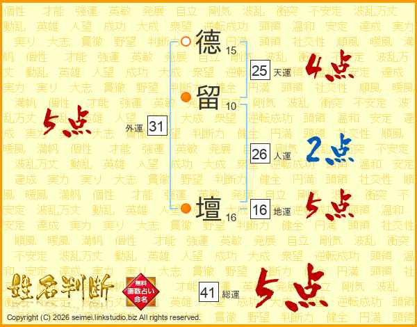 德留壇さんの総運は41画の5点!