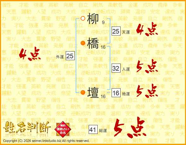 柳橋壇さんの総運は41画の5点!