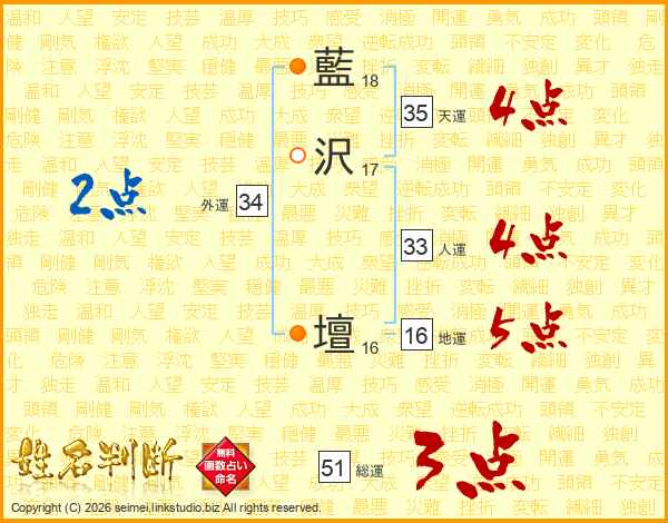 藍沢壇さんの天運は35画の4点!