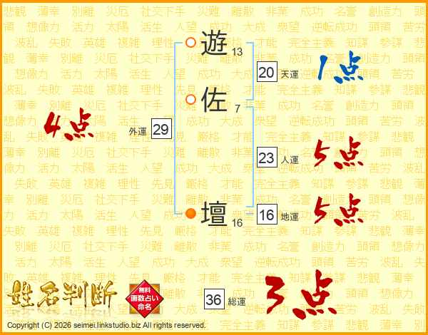 遊佐壇さんの総運は36画の3点!