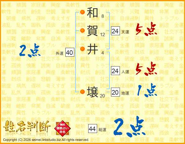 和賀井壌さんの人運は24画の5点!