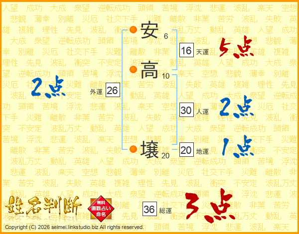 安高壌さんの総運は36画の3点!