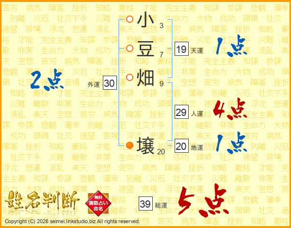 小豆畑壌さんの総運は39画の5点!