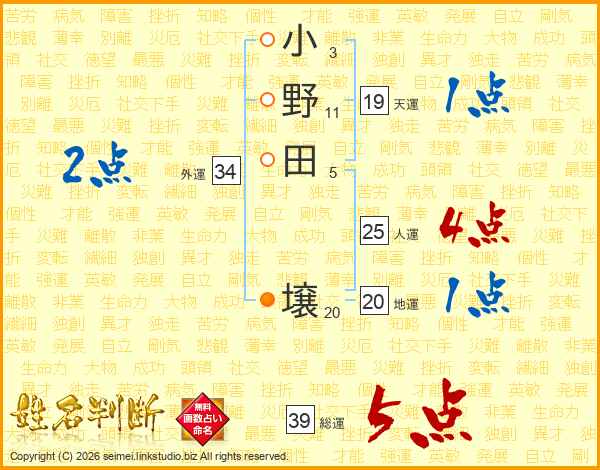 小野田壌さんの総運は39画の5点!